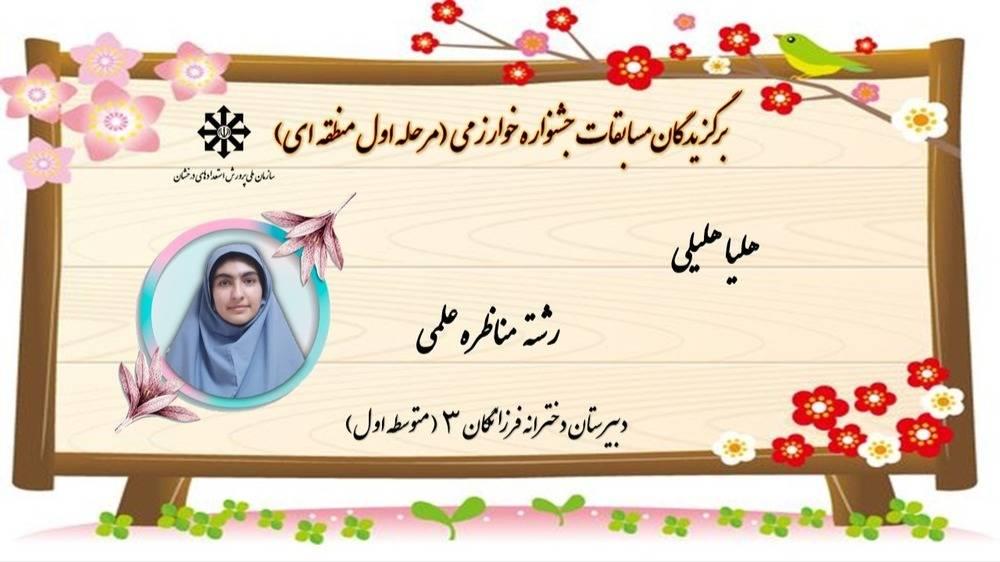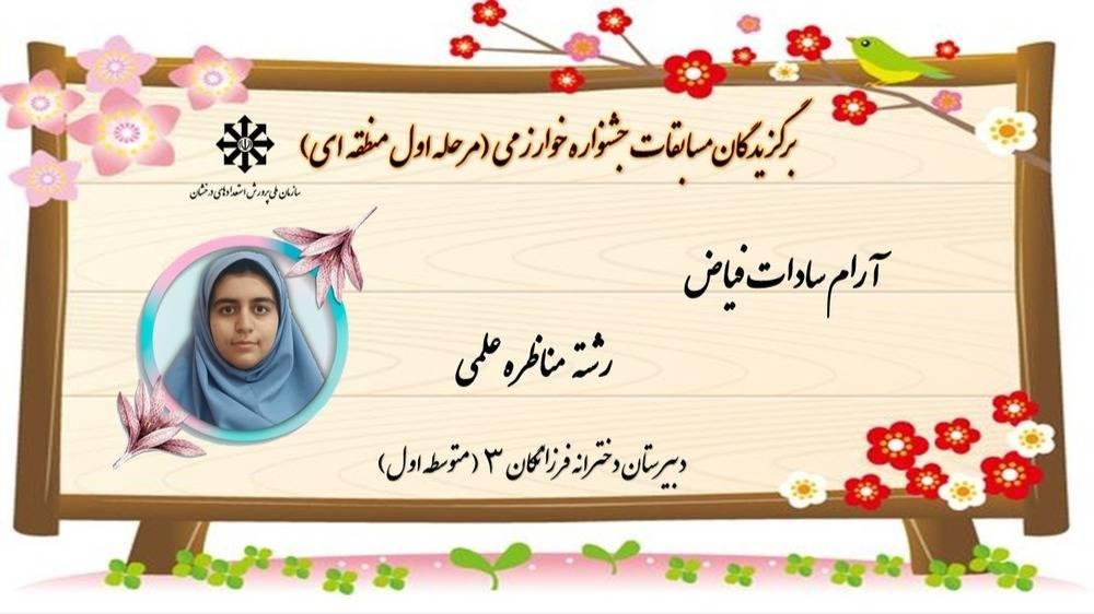 برگزیدگان مرحله منطقه ای جشنواره نوجوان خوارزمی(راه یافتگان به مراحل استانی)سال تحصیلی 1403-1402