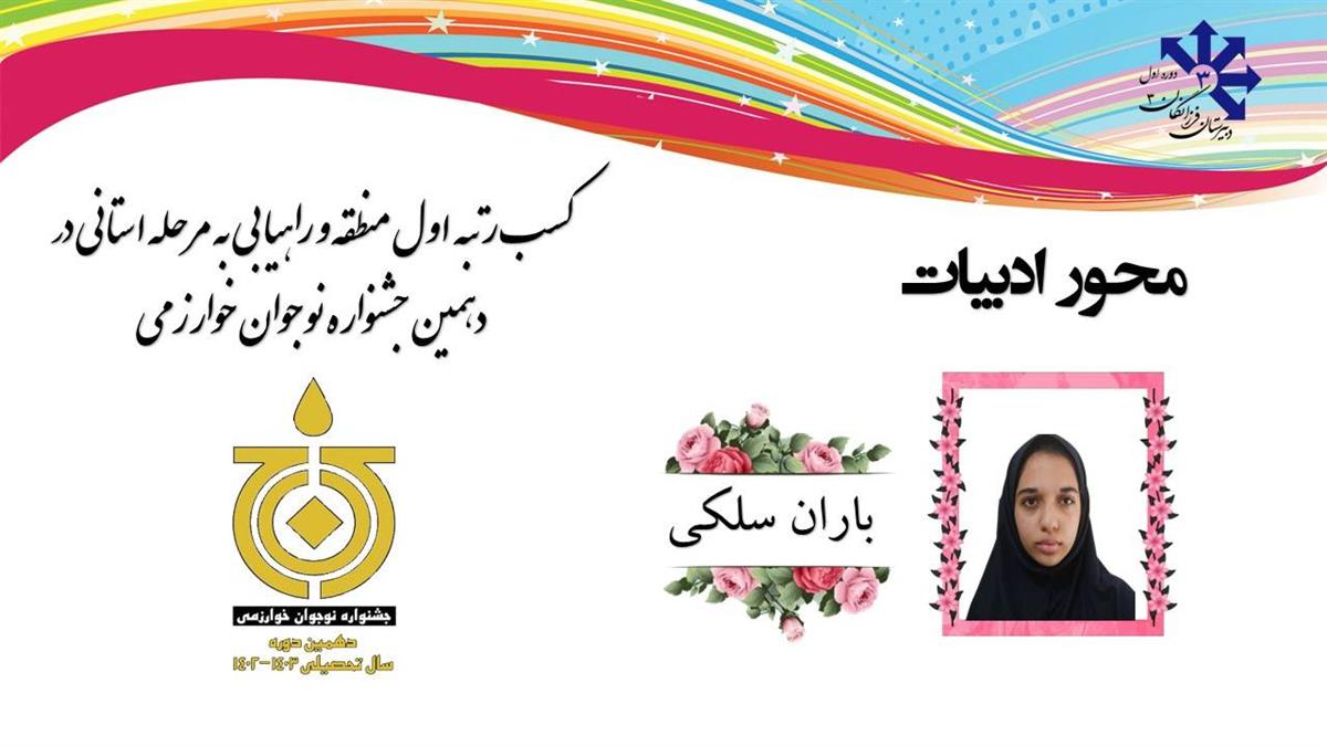 ✴️ *درخششی دیگر از دانش آموزان دبیرستان فرزانگان ۳ منطقه ۱۲ شهر تهران*