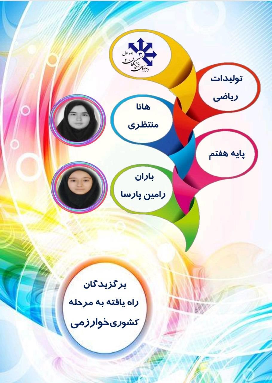 ✴️ *درخششی دیگر از دانش آموزان دبیرستان فرزانگان ۳ منطقه ۱۲ شهر تهران*