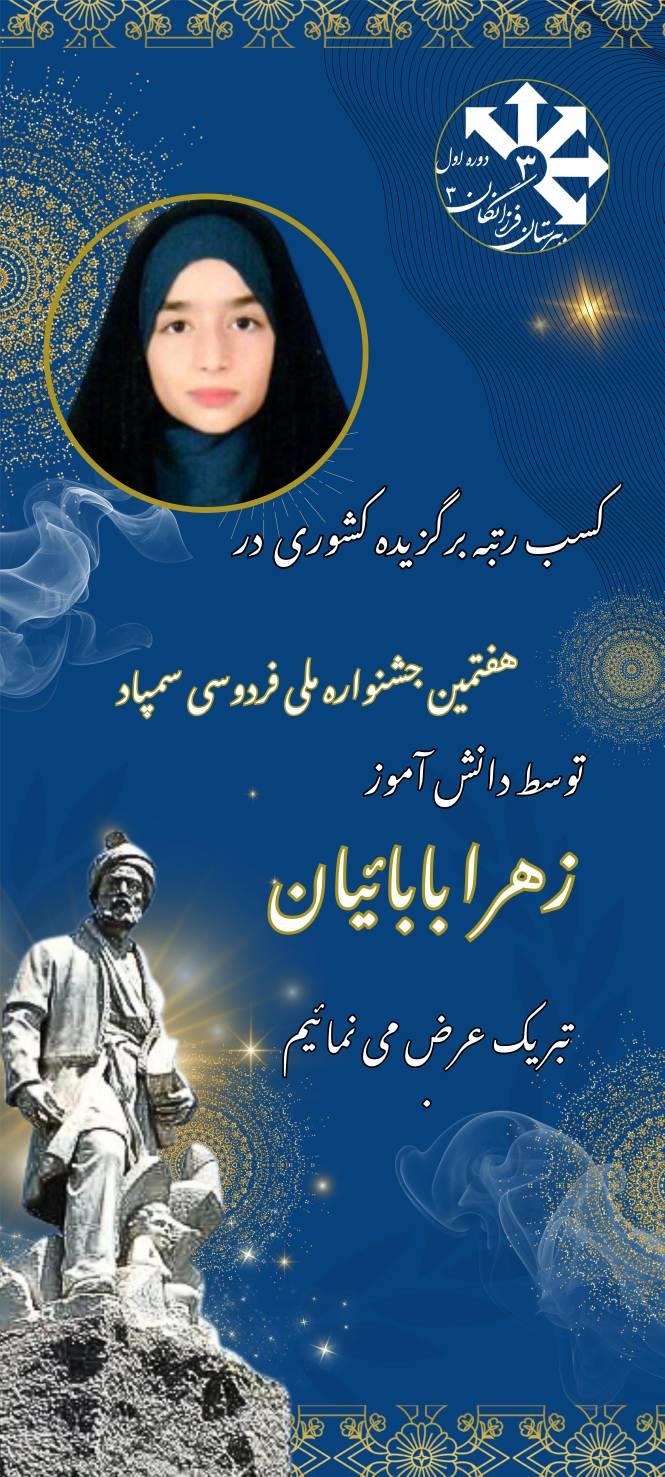 افتخار دیگری برای دختران ادیب و هنرمند فرزانگان ۳ دوره ی اول در جشنواره ملی فردوسی